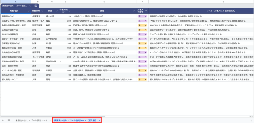 「業務洗い出し・ゴール設定シート(記入例)」シートもご参考ください。