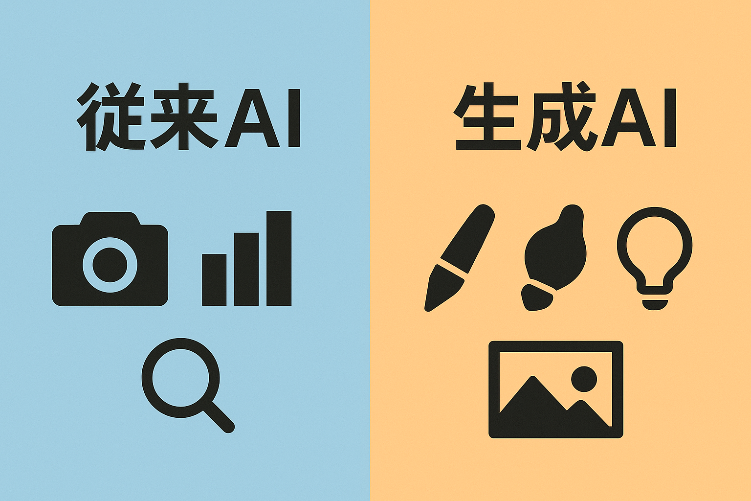 - 従来のAIの得意技(例:識別・分析型AI)